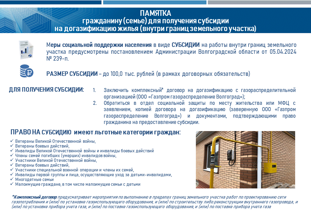 Памятка гражданину по определению возможности получения субсидии на догазификацию жилья
